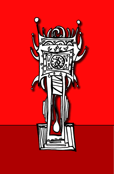 The process begins with pen, ink, & paper, and ends as a giclee on canvaswith acrylic embellishments or lustre paper.