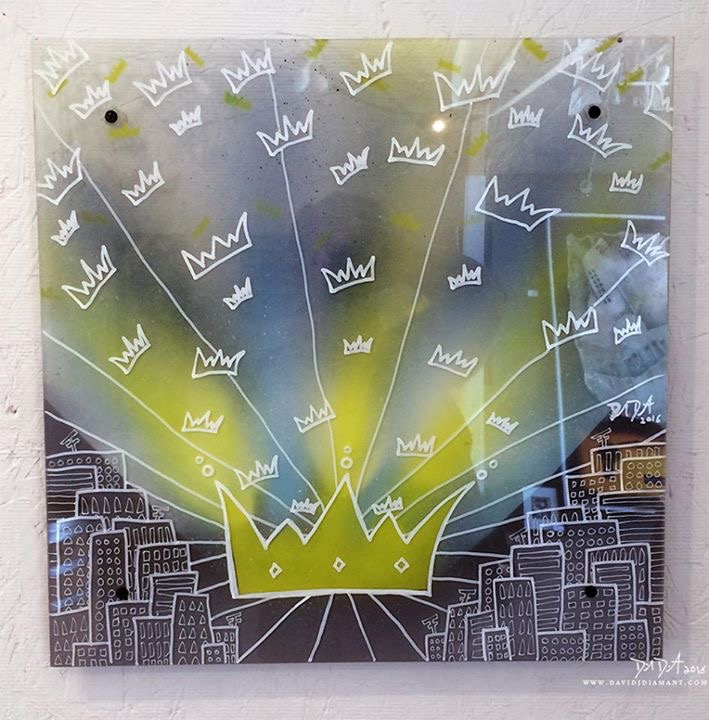 "Heavy Lies the Head" - Plexiglass Shadow Art - Acrylic and spray paint on plexiglass, wood & french newspapers.