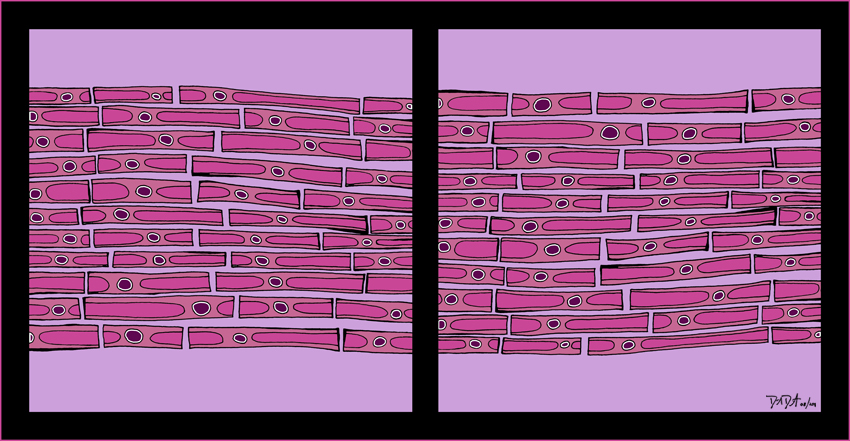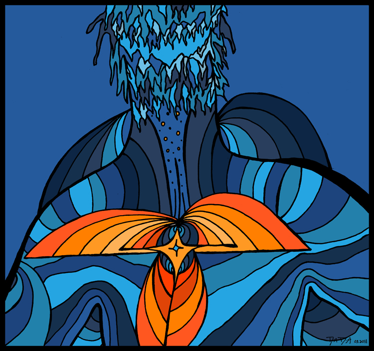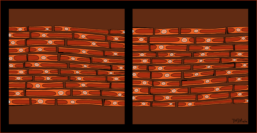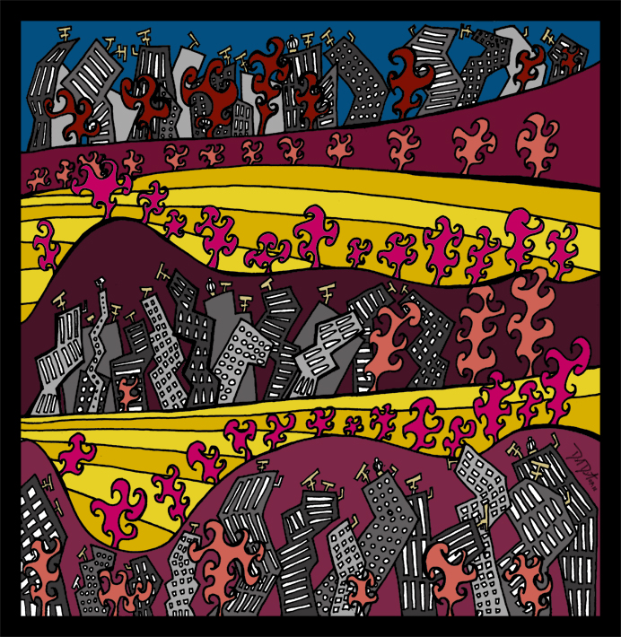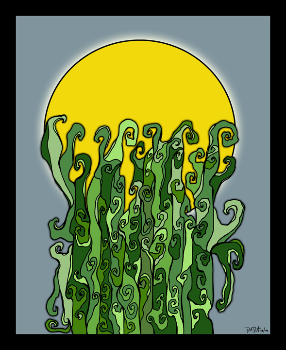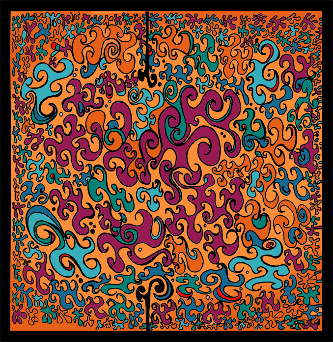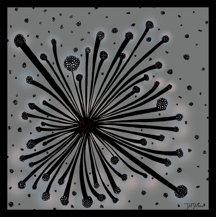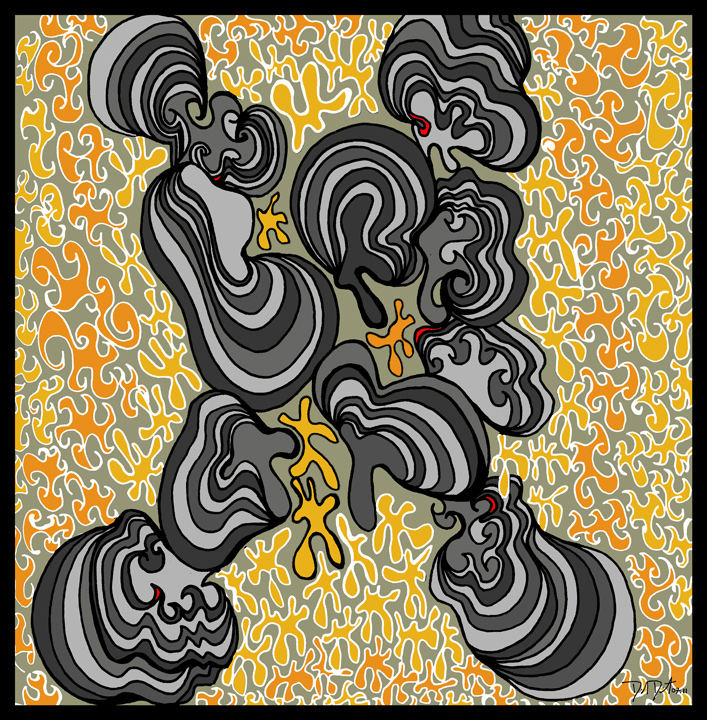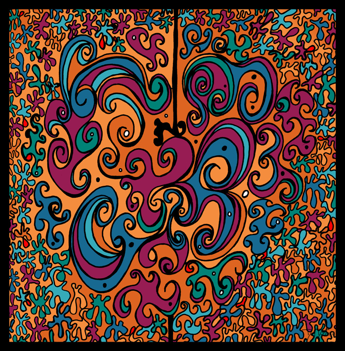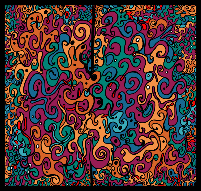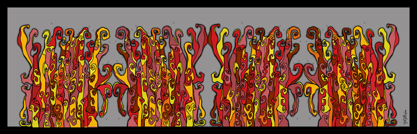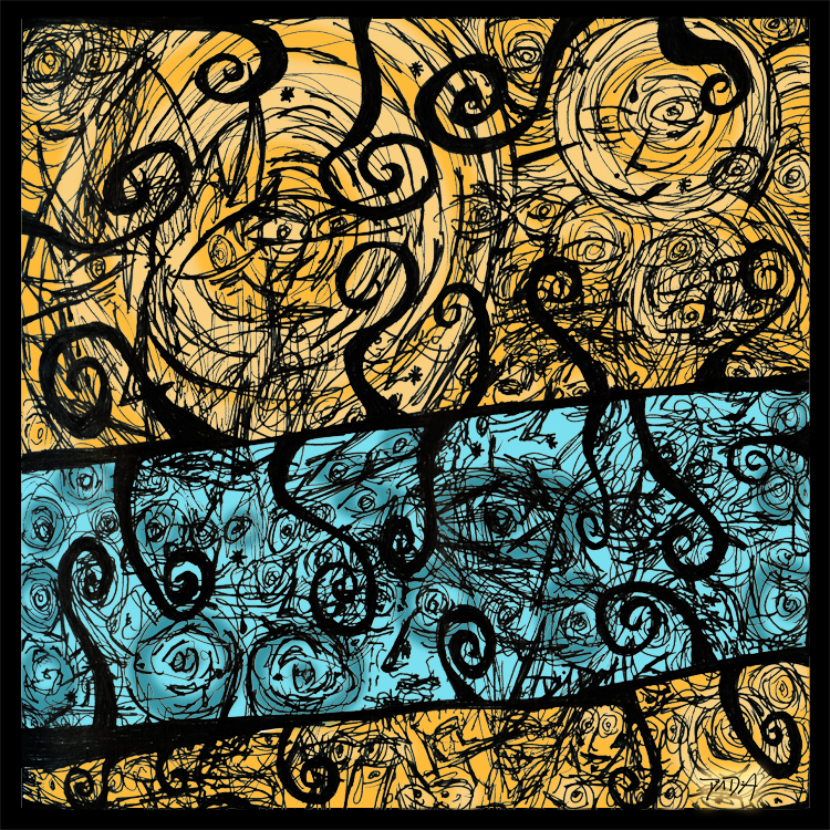 The process begins with pen, ink, & paper, and ends as a giclee; on canvas with acrylic embellishments or on lustre paper.