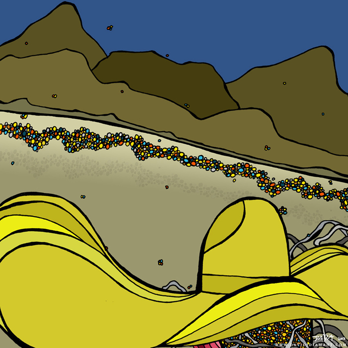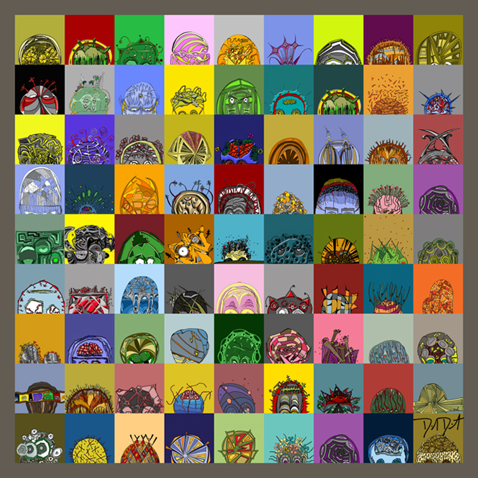The process begins with pen, ink, & paper, and ends as a giclee; on canvas with acrylic embellishments or on lustre paper.