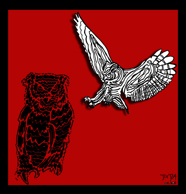 All Owls are for sale. All Owls are signed, numbered and Limited Edition. The process begins with pen, ink, & paper, and ends as a giclee; on canvas with acrylic embellishments or on lustre paper.