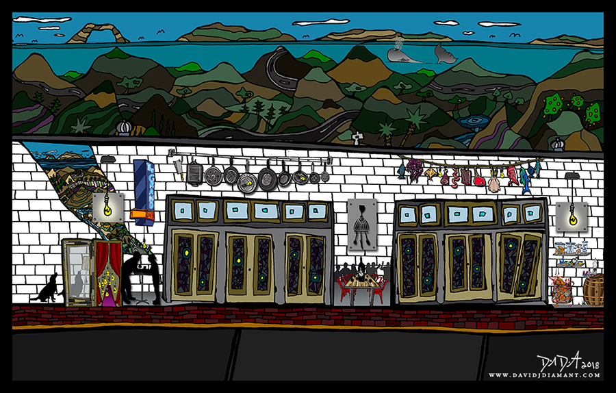 The process begins with pen, ink, & paper, and ends as a giclee; on canvas with acrylic embellishments or on lustre paper.