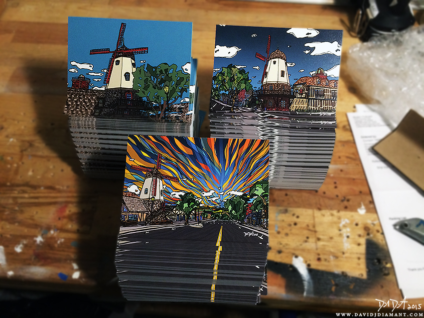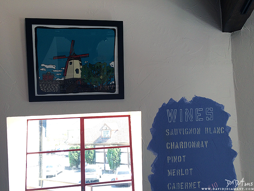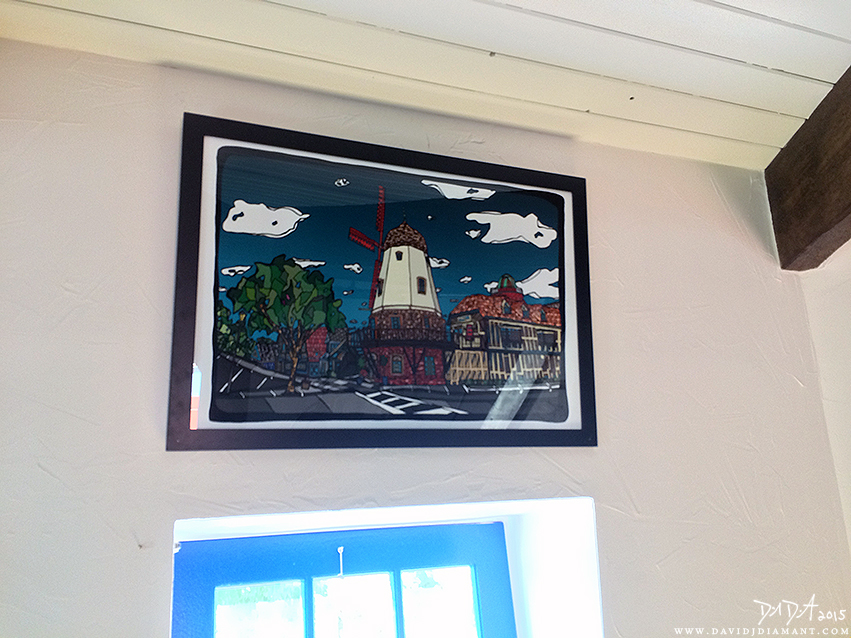 All pieces are for sale. contact david@davidjdiamant.com All pieces are handdrawn and sold as limited edtiiont prints. A little Danish town north of Santa Barbara, CA. (Solvang, CA.) Also on display & for sale at Lost Point Winery, located on Alisal Rd. in the Windmill. Also, check out the custom stencil work!